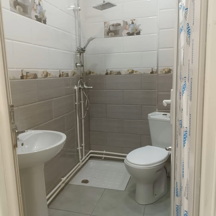 – Remplacement total des équipements de toilette et douche, (cuvette, lavabo accessoires douche).